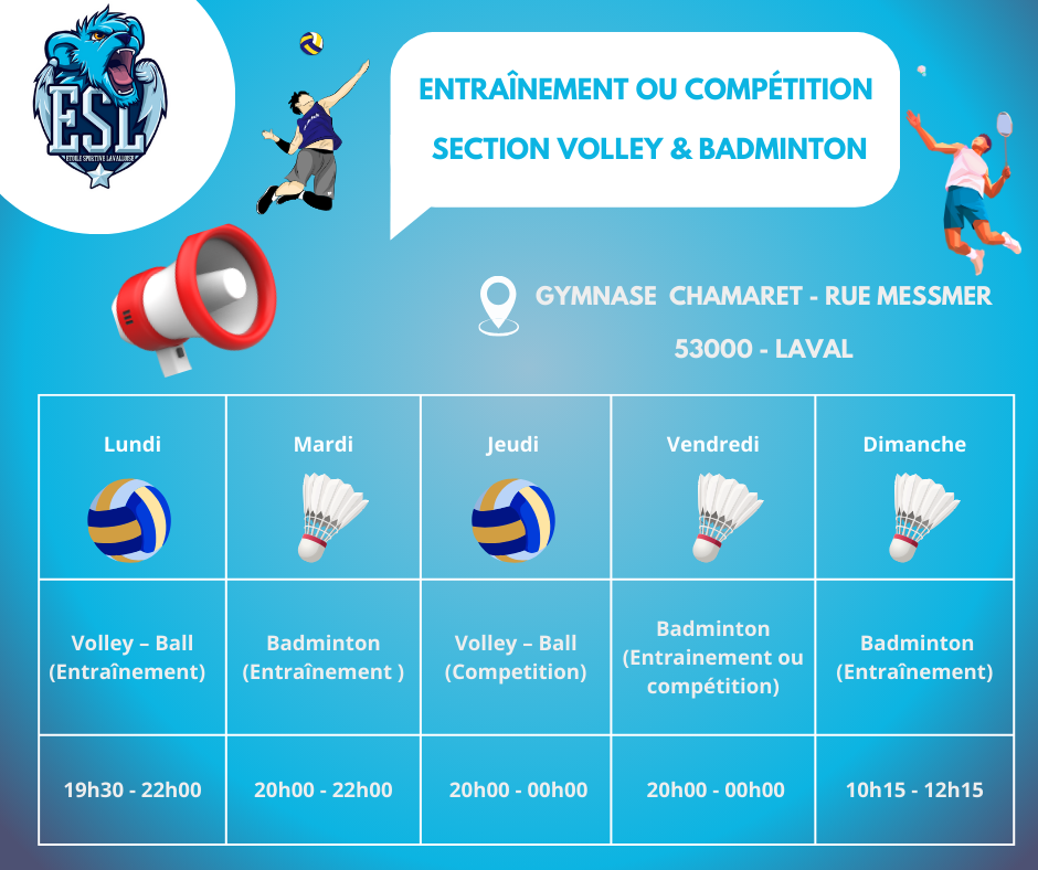 L'Etoile Sportive Lavalloise, un club loisir & compétition de badminton et volley à Laval (53) !