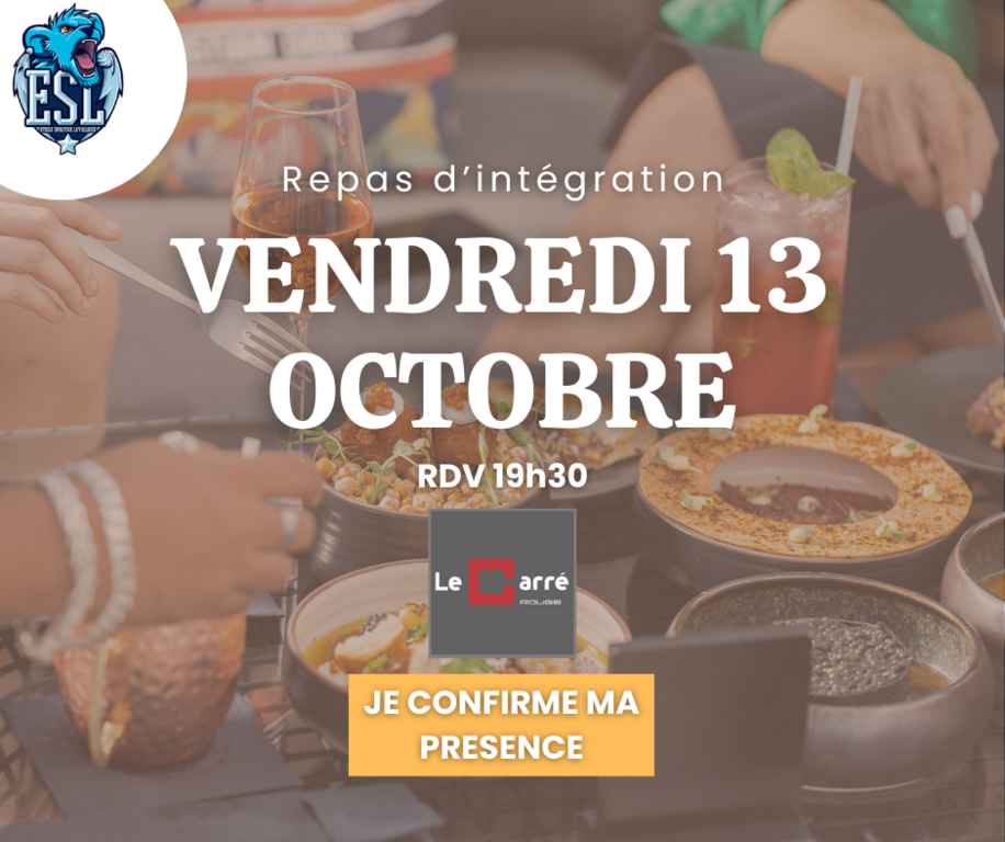 Comme à chaque début de saison, nous vous proposons de nous retrouver le vendredi 13 octobre pour un repas d'intégration. C'est toujours un super moment convivial pour démarrer la saison et faire connaissance !