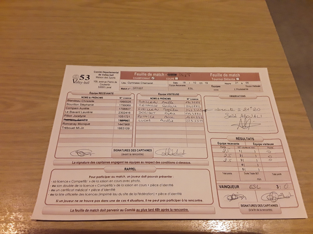 Volley - Départ. 18/10/19 - contre l'Huisserie